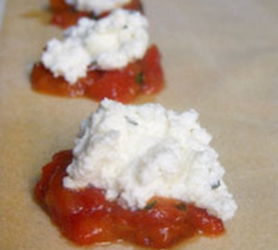 Disposer le rectangle de pâte à plat sur un plan de travail. Disposer les poivrons en tas espacés d'un côté du rectangle, mettre au dessus un peu de mélange au Brocciu. Replier la pâte dessus. Bien appuyer avec les doigts pour chasser l'air et coller la pâte. Découper des carrés avec une roulette. Renouveler jusqu'à épuisement des ingrédients.