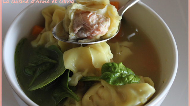 Des raviolis réalisés à base de pâte won tons (épicerie asiatique), farcis de saumon frais et ricotta. Cuits dans un bouillon de légume.