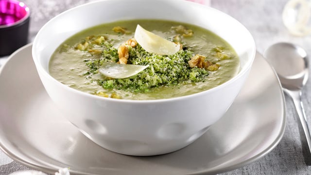 Chauffer le régal de légumes verts et le verser dans 4 coupelles.