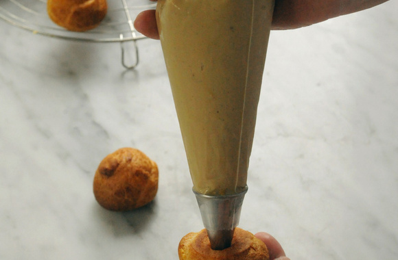 8Placez la crème au café dans une poche à douille et farcissez-en les choux.