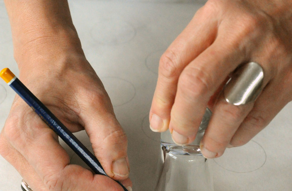 Tracez sur une feuille de papier sulfurisé six cercles de 4,5 cm de diamètre et autant de 3 cm sur une autre. Retournez les feuilles de papier sulfurisé et posez-les sur une plaque de cuisson.