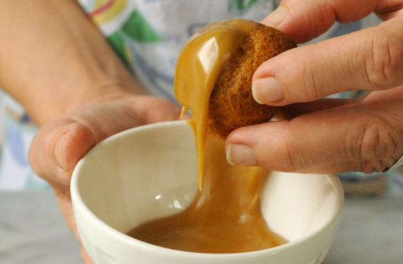 Trempez vos choux dans le fondant en retirant le surplus avec votre doigt et posez-les sur une grille.