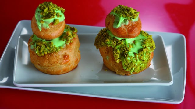 Laver le Bol du robot et le Batteur Souple.Faire une pâte à choux.Quand la pâte à choux est prête, la laisser reposer 10 mn. - 3Sur une plaque du four non beurrée recouverte de papier sulfurisé, faire 8 boules de la grosseur d'un œuf et sur une autre plaque, faire 8 boules de la grosseur d'une noix.