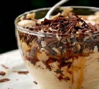 Prenez alors des petites tasses ou des petits verres pour servir. Remplissez-les à moitié avec la crème à la ricotta, ajoutez du chocolat râpé et quelques gouttes de sirop. Recommencez, versez la crème restante dans les tasses, puis le chocolat râpé restant, enfin le sirop, saupoudrez de sucre glace parce que c'est joli et que c'est bon.