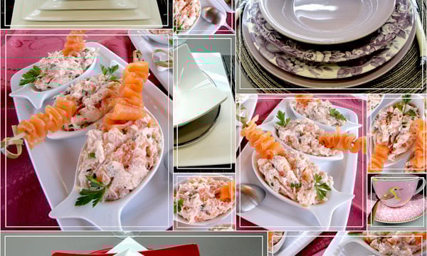 Dans un récipient mélangez le philadelphia, la ciboulette, les 2 saumons, un peu de sel et du poivre.