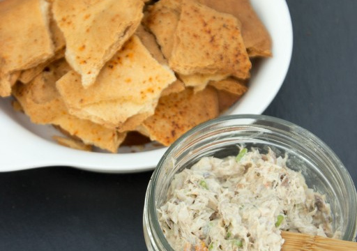 Ecraser grossièrement le poisson et y incorporer le petit suisse, le fromage de chèvre frais, l'oignon nouveau émincé finement.
