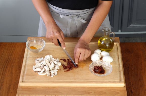 3Coupez les tomates séchées en petits dés.