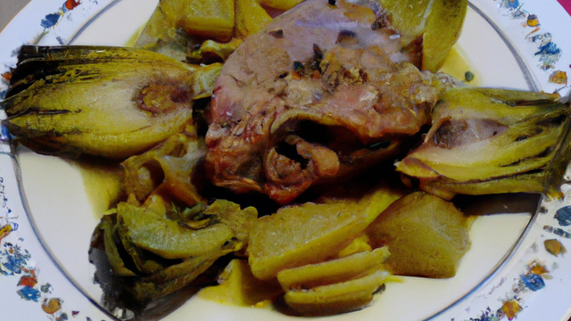 Cette recette est composée de ris de veau, d'artichaut et de lardons..