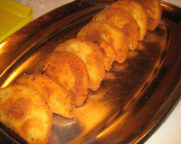Ajouter les crevettes coupées en petits morceaux et le persil haché. Mélanger. Arroser de quelques gouttes de jus de citron et laisser refroidir. Passer les risoes dans les jaunes d'oeufs puis les couvrir de chapelure. Cuire.