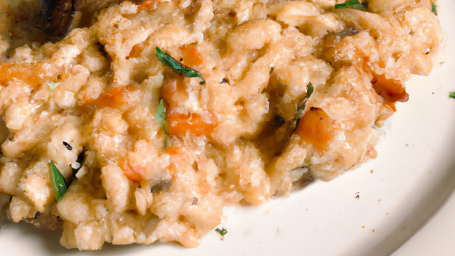 Ajouter la moitié du bouillon et mélanger. Couvrir, mettre au four 25 minutes dans un four chauffé à 180°C. Surveillez et ajoutez le bouillon restant en plusieurs fois. Au moment de servir ajouter le parmesan et mélanger.
