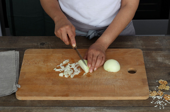 1Pelez et hachez finement l'oignon.
