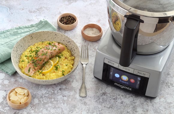 Un risotto et son saumon vapeur à préparer facilement avec le Cook Expert Magimix. Un plat complet plein de saveurs !
