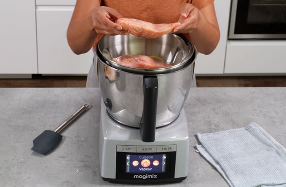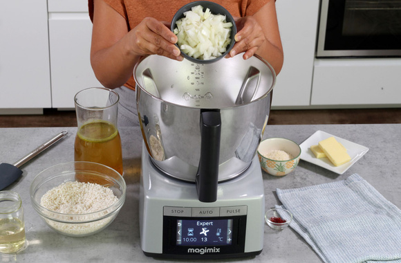 1Versez l'oignon haché dans la cuve du Cook Expert Magimix.