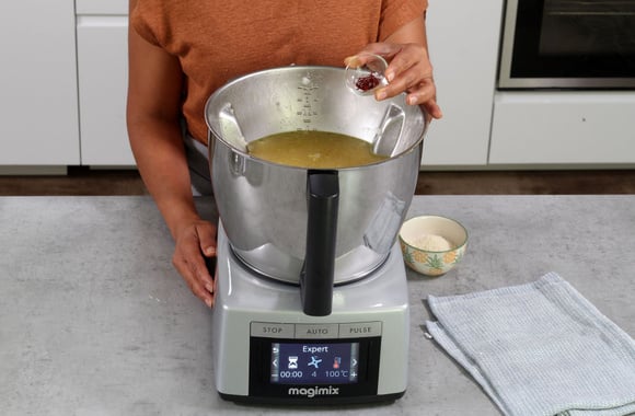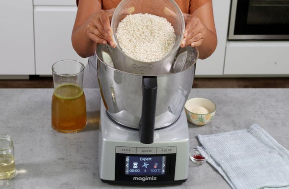 5Ajoutez le riz. Relancez le programme EXPERT, 3 minutes/vitesse 4/100°C.