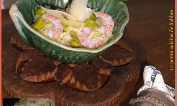 Une recette de risotto printanier avec de bonnes fèves de saison et frais grâce aux jolies crevettes