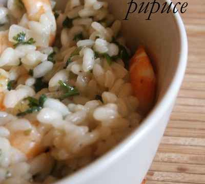 4) Ajoutez les crevettes au riz et laissez mijotez encore quelques minutes.