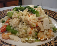 Ajouter alors du parmesan (la quantité dépendra de votre goût et de la cuisson du risotto). Ajouter les queues d'écrevisses et les morceaux d'asperges (sans mettre les têtes conservées pour décorer les assiettes).