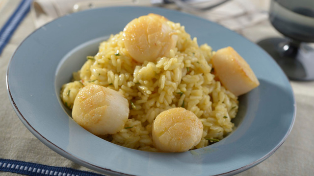 Un risotto simple et goûteux qui prend des airs de fête grâce aux coquilles Saint-Jacques.