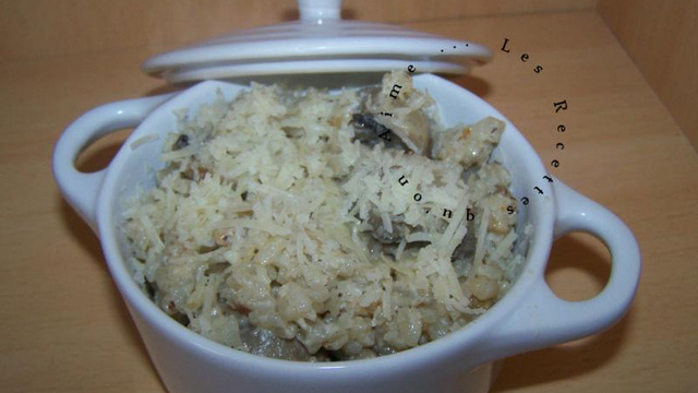 Rajoutez le riz, les champignons, le reste de la crème et le mascarpone et recouvrez du bouillon. Assaisonnez. Laissez cuire à couvert à feu moyen jusqu'à ce que le riz soit fondant et la sauce crémeuse (au moins 45 minutes). Hors du feu, incorporez le parmesan râpé. Remuez bien.