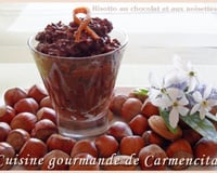 Dans une sauteuse mettre le beurre à fondre puis ajouter le riz et le faire nacrer. Verser la moitié du lait chocolaté et laisser cuire à feu doux, jusqu'à absorption du lait : environ 15 minutes. Mettre le reste du lait et poursuivre la cuisson en remuant régulièrement, jusqu'à ce que le riz soit fondant.