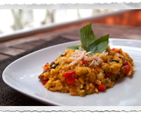 Parsemer le dessus du risotto avec des copeaux d'Ossau Iraty découpés à l'économe quelques morceaux de beurre et mélanger à nouveau juste avant de servir.