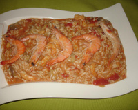Ajouter au mélange les crevettes, la crème et le curry. Réservez. Faire revenir les oignons émincés dans l'huile d'olive et poivrer. Ajouter le riz mélanger jusqu"à ce qu'il soit translucide.
