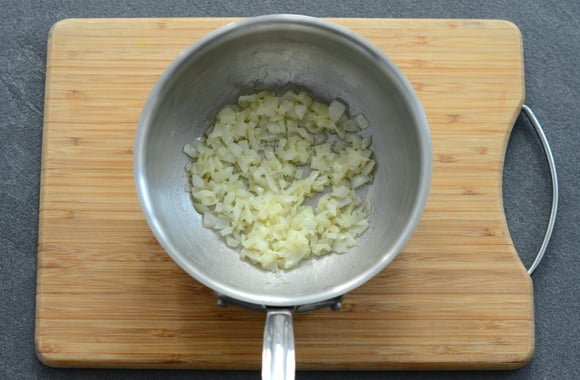 2Faites revenir l’oignon haché dans une grande casserole avec 2 cuillères à soupe de beurre.