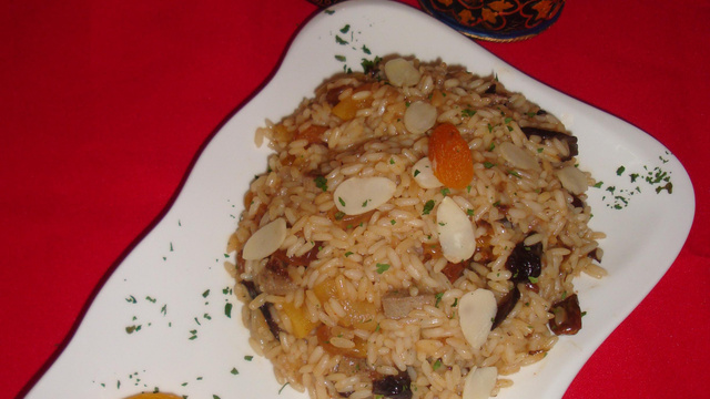 Risotto façon tajine marocaine avec des fruits secs et des escargots