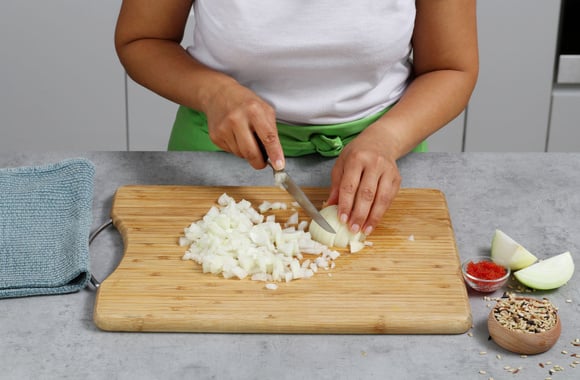 1Épluchez et hachez l'oignon.