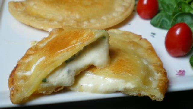 Petits chaussons remplis de fromage blanc et de Cantal.