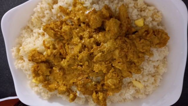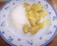 C'est un riz cuit à la vapeur accompagné d'une sauce à base de d'escalope de dinde coupé en petit dés, cuit au curry et rehaussé par de la crème fraîche.