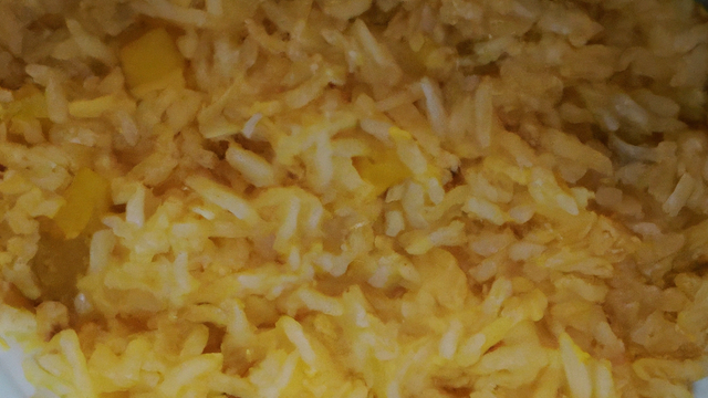 Prendre une autre casserole et faire cuire le riz et une autre poèle pour le hacher assaisonner sel poivre et avec des petits oignons.