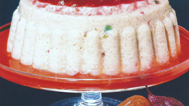 Mettez au réfrigérateur pendant huit heures. Démoulez; versez le reste de la gelée de groseille autour du gâteau.