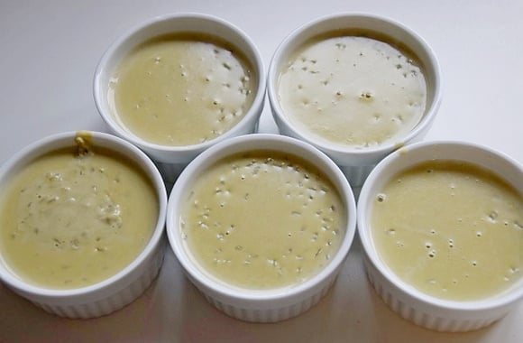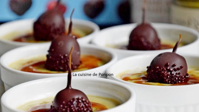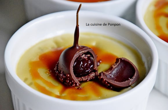 2Laisser refroidir et garnir chaque ramequin de crème caramel au beurre salé et d'une guinette à l'armagnac.