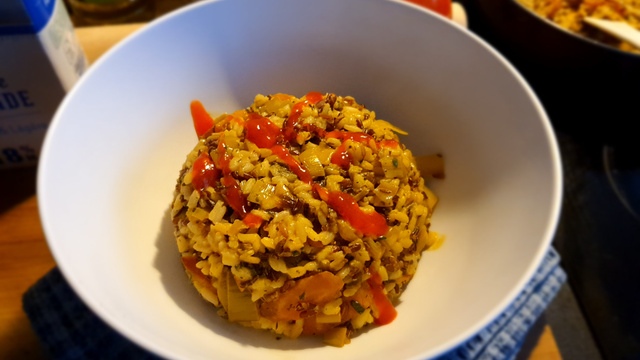Arrosez à votre convenance de sauce sriracha et dégustez aussitôt.