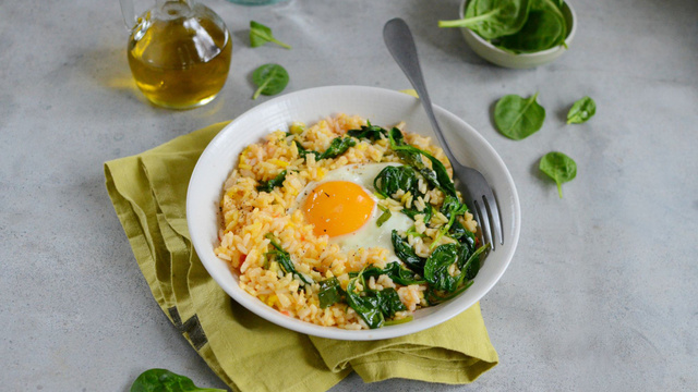 Le riz sauté c'est toujours un régal surtout si on l'accompagne de légumes ou de viande. Cette fois, on vous présente le riz sauté autrement en ajoutant des pousses d'épinards et un œuf.
