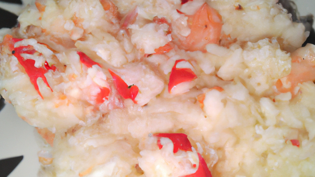 Faîtes cuire le riz dans de l'eau et du bouillon-cube, et laissez-le refroidir. Coupez le surimi en lamelles, coupez les tomates en petits dés. Préparez votre sauce avec moutarde, mayo, crème, jus de citron.