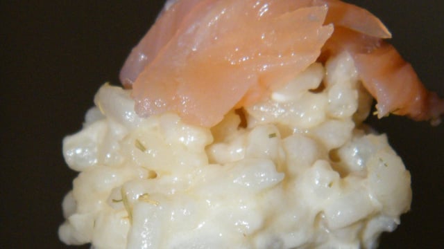 Quand le riz est cuit, éteignez le feu, rectifiez l'assaisonnement et servez aussitôt en ajoutant le saumon fumé et les oeufs.