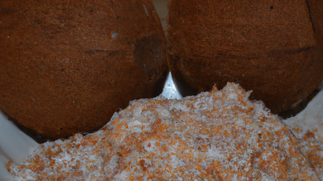 Blanchir les oeufs avec le sucre, puis ajouter la noix de coco râpée et mélanger avec une spatule.