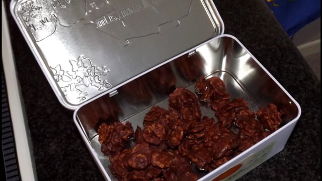 - 4Déposez des petits tas de corn-flakes choco-banane sur un plat couvert de papier aluminium.