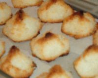 Incorporer la noix de coco et la vanille , mélanger et retirez du feu. Dresser des petits tas sur une plaque à pâtisserie. Cuire à 160°C 15 min environ. Laisser refroidir.