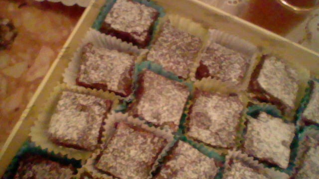 Couper en 24 doigts et saupoudrez de sucre glace en le poussant doucement à travers une passoire à thé ou petite passoire.