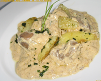 Disposez les rognons dans l’assiette avec les pommes de terre et nappez avec la sauce à la crème.