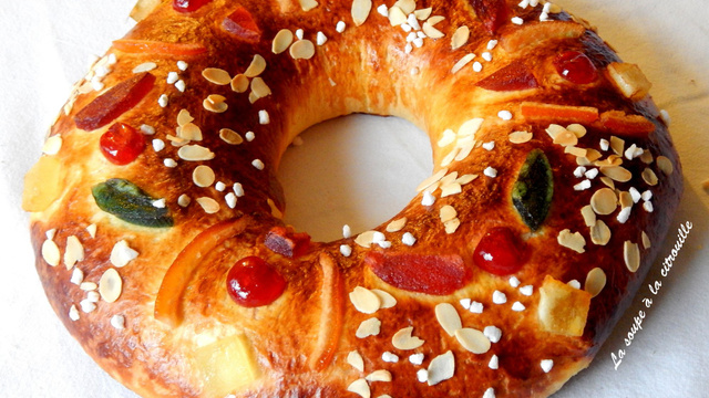 Cette couronne briochée parfumée à la fleur d'oranger et aux zestes d'agrumes est dégustée en Espagne pour l'Epiphanie. On la décore avec des fruits confits et des amandes effilées.