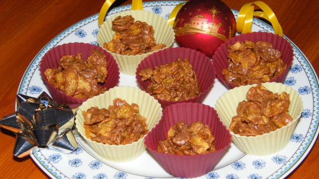 Hors du feu mélangez avec les corn flakes puis remplissez des caissettes en papier.