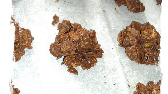 Sur une plaque avec papier sulfurisé, disposer des petits tas et laisser sécher (impératif de mettre au frigo).