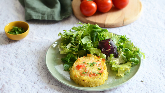 Ce sont des bowl à base de pommes de terre râpée et ils sont garnis de poivrons et herbes.