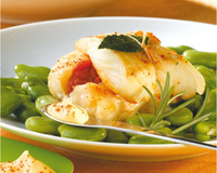 L'originalité et la réussite de cette recette vient de la cuisson du cabillaud avec du romarin, du laurier et des tomates. Un plat pour épater vos amis, subtil mélange de cabillaud et de fèves.