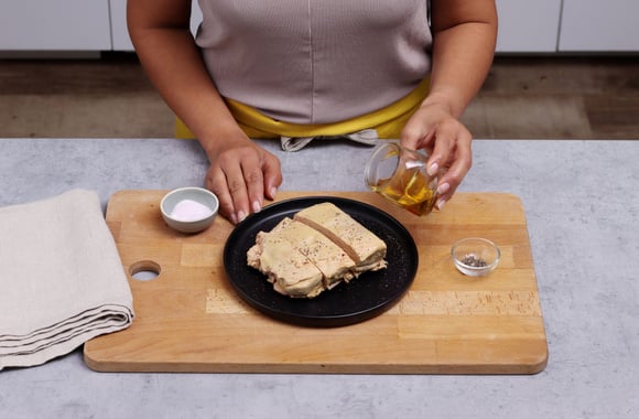 Salez, poivrez le foie gras et arrosez-le d’un filet d’Armagnac.