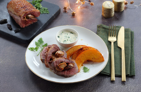 Un rôti de Magret parfumé à la fève tonka original et parfait pour un repas de fêtes.